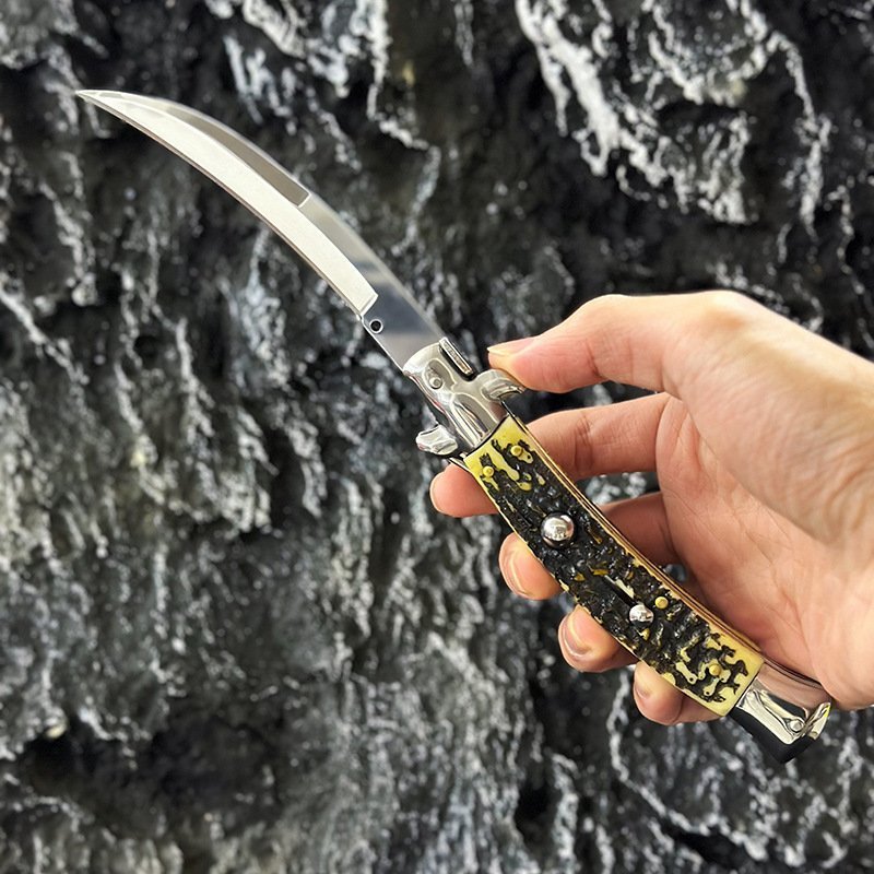 9 Inch Faux Deer Bone Curved Blade Switchblade Stiletto Switchblade