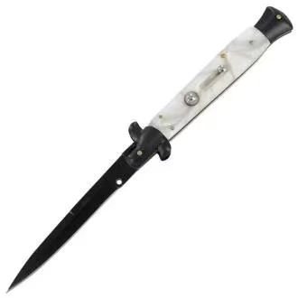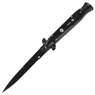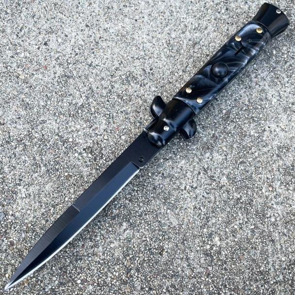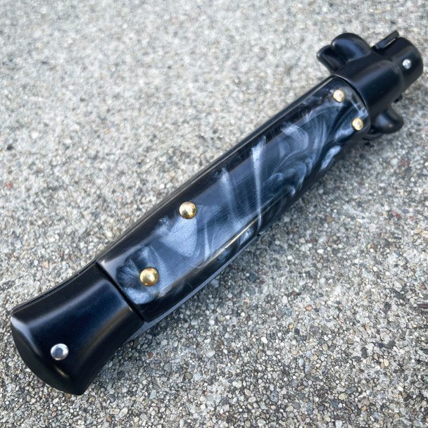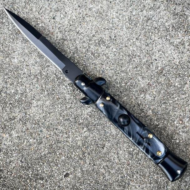 Navaja de bolsillo italiana negra de 8,75 pulgadas con mango de estilete y acabado en perla negra