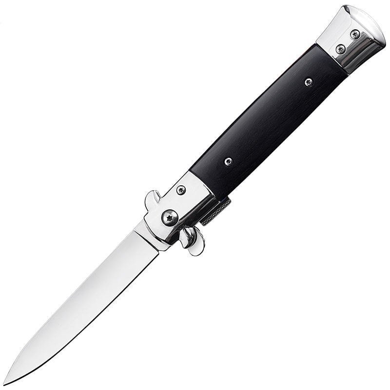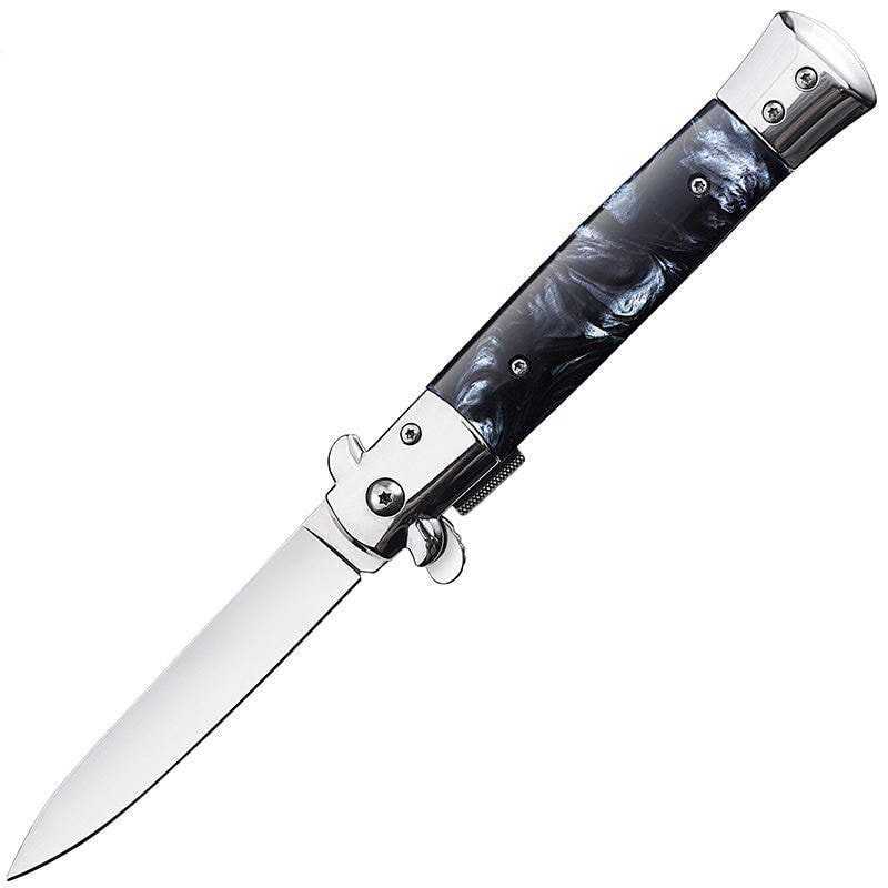 Navaja de bolsillo italiana negra de 8,75 pulgadas con mango de estilete y acabado en perla negra